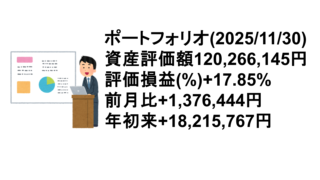 ポートフォリオ ポートフォリオ(2025/11/30) 2025/11/30時点でのポートフォリオをまとめたいと思います。11月に個人的にあったこと、投資に関するニュースは以下のようになっています。 台湾有事答弁問題人による株取引のとらえ方EV車の未来 高市首相の台湾有事は存立危機... 2025.12.13 ポートフォリオ